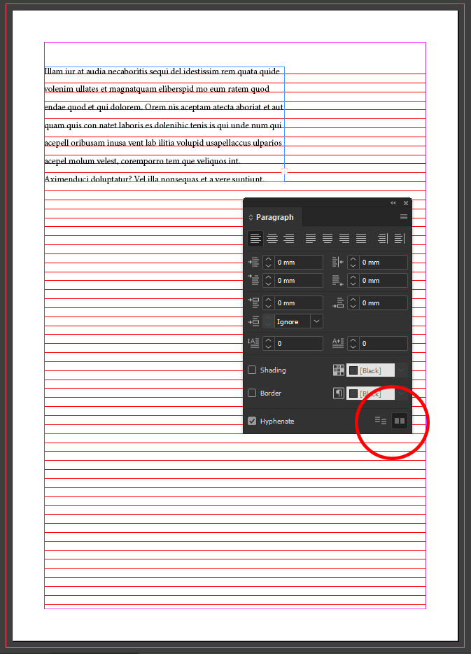If we opt to include a Baseline Grid (as we generally should for professional use), we need to ensure our Text sits on top of the Grid neatly. This is achieved through the Paragraph Window in which we simply Check the Bottom Right Icon as shown on the Right Image.