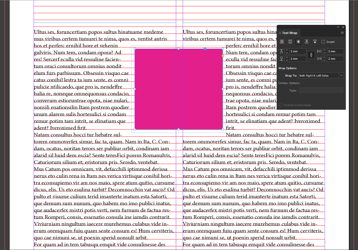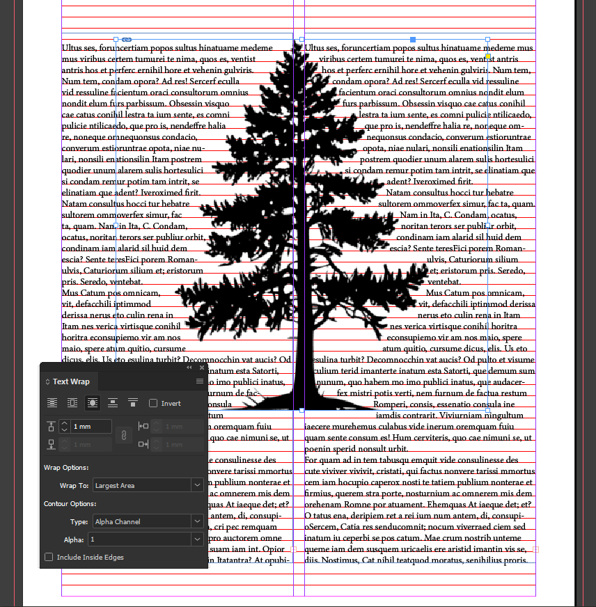 Below you can see the difference between: No Text Wrap, a Basic Text Wrap and a more Advanced Text Wrap with our tree which uses an Alpha Channel Wrap.